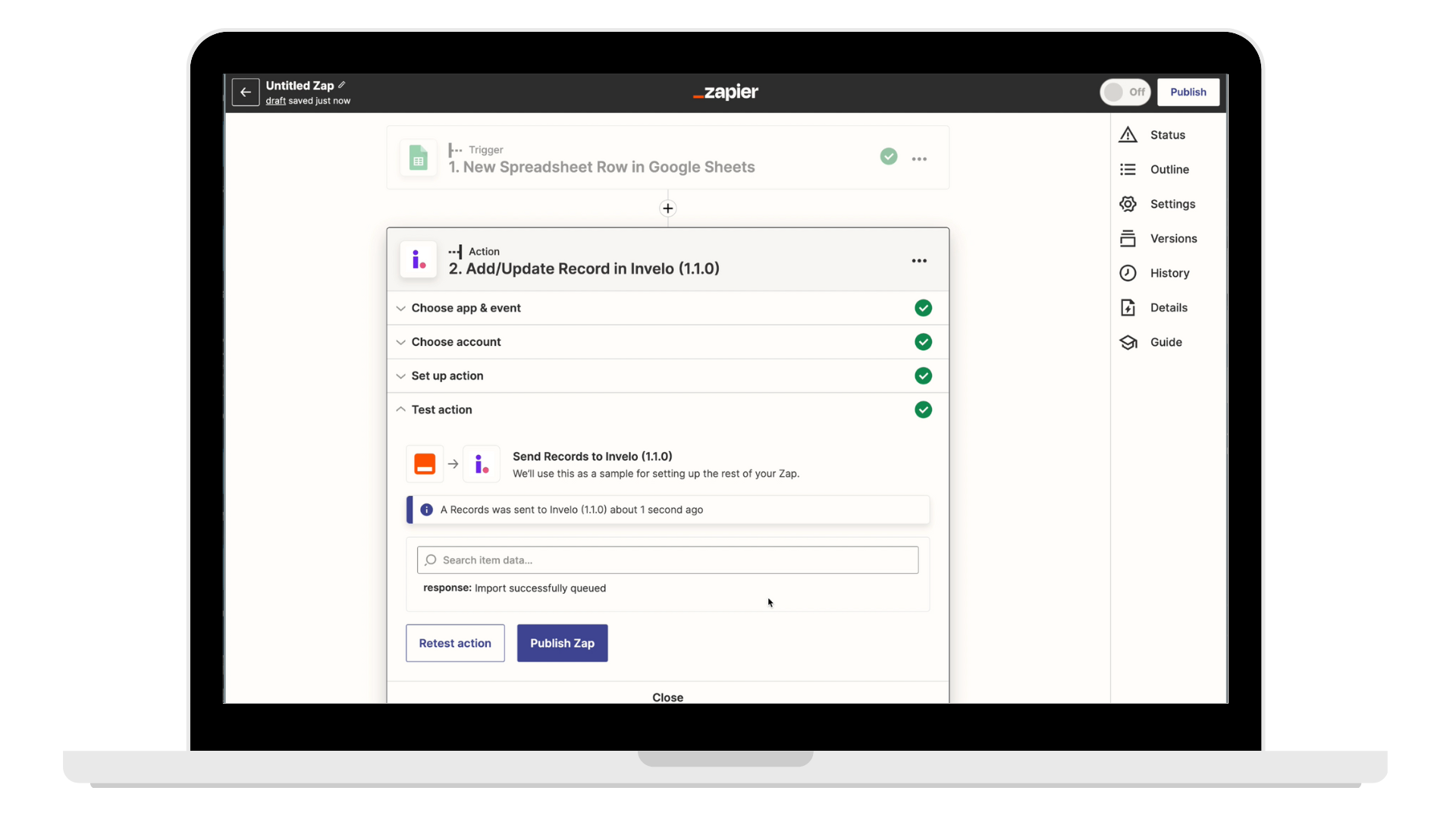 Pro Tip: Check out this video for how to set up a zap from Invelo to Google Sheets.